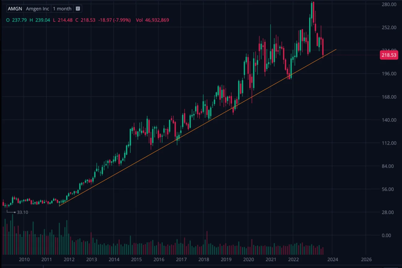 En este caso nos centraremos en la compañía AMGEN con el ticker $AMGN.