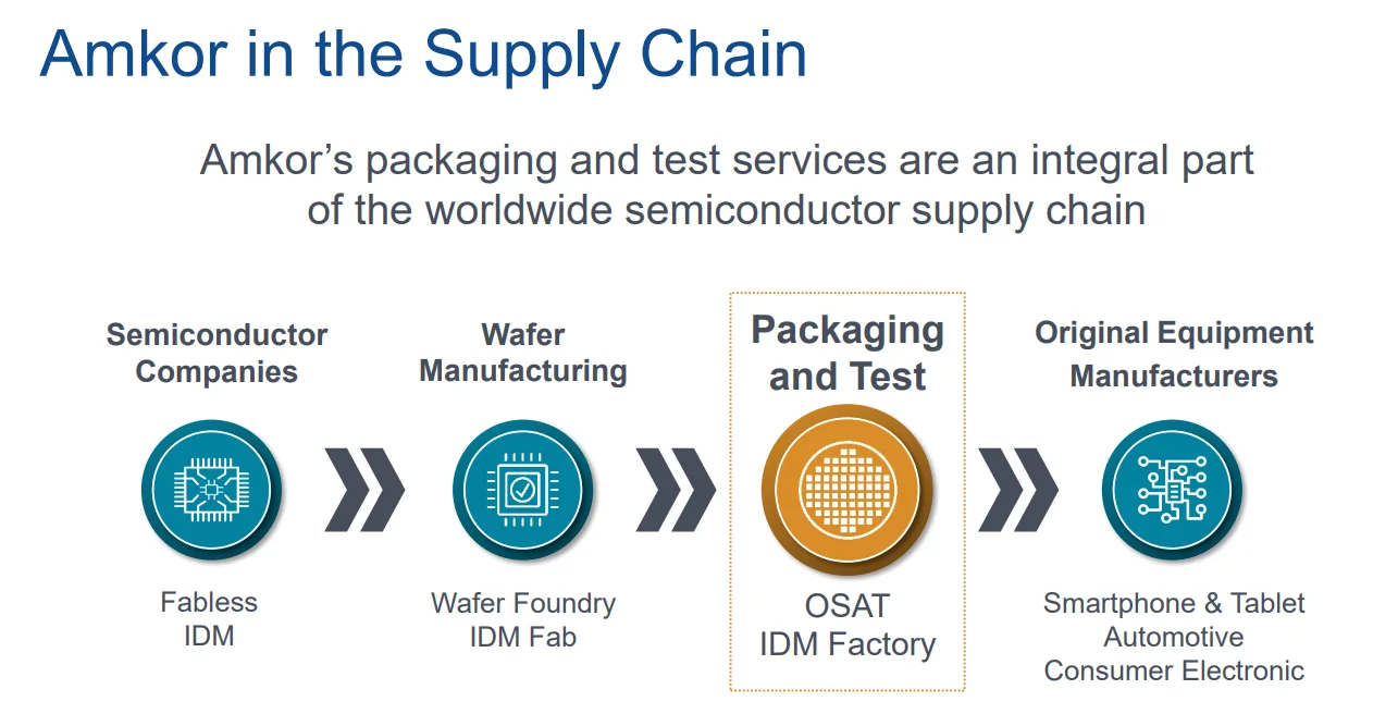 - Amkor Technology Inc es un proveedor de servicios de prueba y empaquetado de semiconductores subcontratados para fabricantes de dispositivos integrados