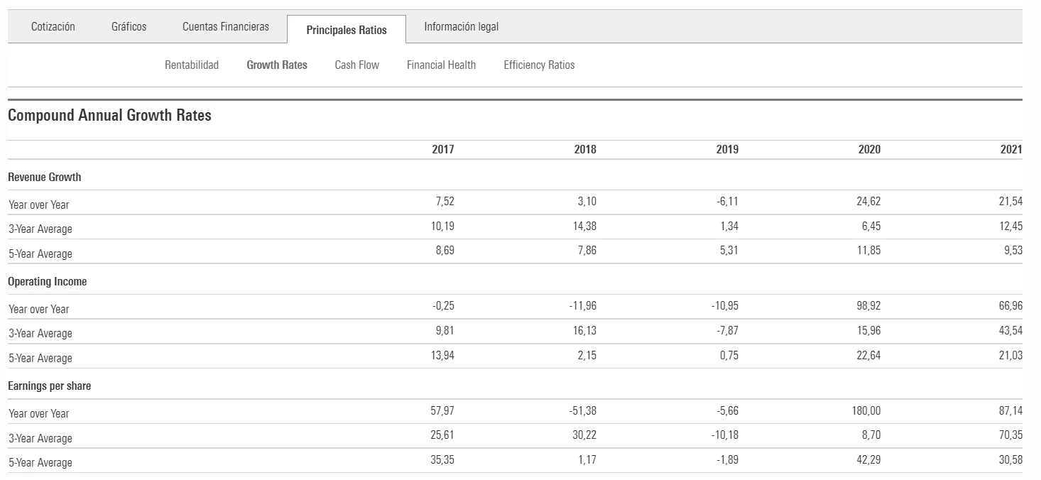 Podemos apreciar, en la tabla de ratios de crecimiento, como seguía una senda de crecimiento constante a excepción del año 2018 y 2019, hay que complementar esa bajada de beneficios, capital y crecimiento en dichas fechas.