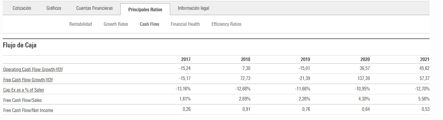 Existe un crecimiento interesante y moderado en los flujos libres de caja.