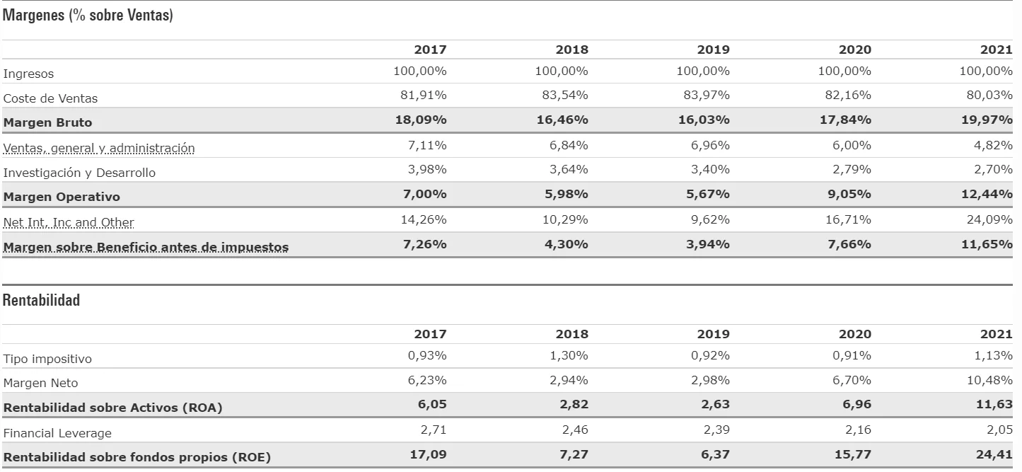 Creo que los cuello de botella y la crisis de semiconductores ha dejado a este tipo de compañías con las rentabilidades muy limitadas, es decir, podían vender más de lo que se le permitía. Dicho esto han tenido que hacer más eficiente su factor trabajo, producción y embalaje, dejando a la compañía con una buena salud.
